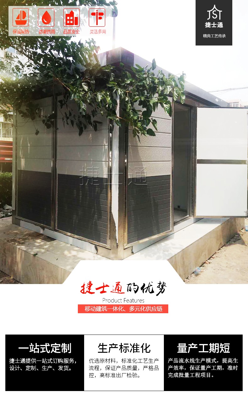 設備房產品特性:造型新穎,防水、防潮、不變形;表面平整、 光滑、材質實心實意、色彩可任意搭配;