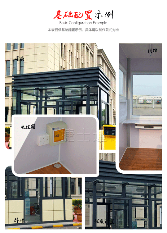 鋼結(jié)構(gòu)崗亭是全鋼結(jié)構(gòu)制作的。節(jié)能燈、開關(guān)、插座、暗敷線路、工作臺等是它的標準配置,可以預留網(wǎng)線和電話線插座。
