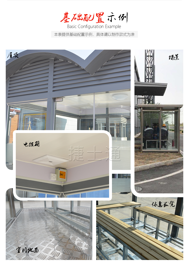 標(biāo)準(zhǔn)配置:屋頂鍍鋅板靜電噴涂,PVC吊頂,墻體玻璃材質(zhì)(鋼化、中空、有色玻璃等可定做),照明燈,漏電保護(hù)器,插座組,開關(guān),長凳,煙灰缸(如需空調(diào),排風(fēng)扇請聯(lián)系客服。咨詢電話:15822882616,公司網(wǎng)址:www.wagerqb.com