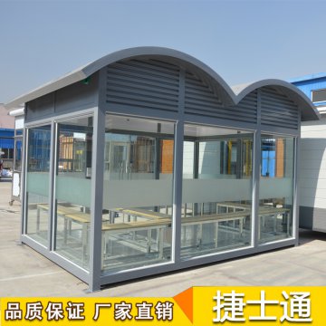 標(biāo)準(zhǔn)配置:屋頂鍍鋅板靜電噴涂,PVC吊頂,墻體玻璃材質(zhì)(鋼化、中空、有色玻璃可定制),電箱、開關(guān)、插座、暗敷電線、照明燈、煙灰缸等。可加配:空調(diào)等。