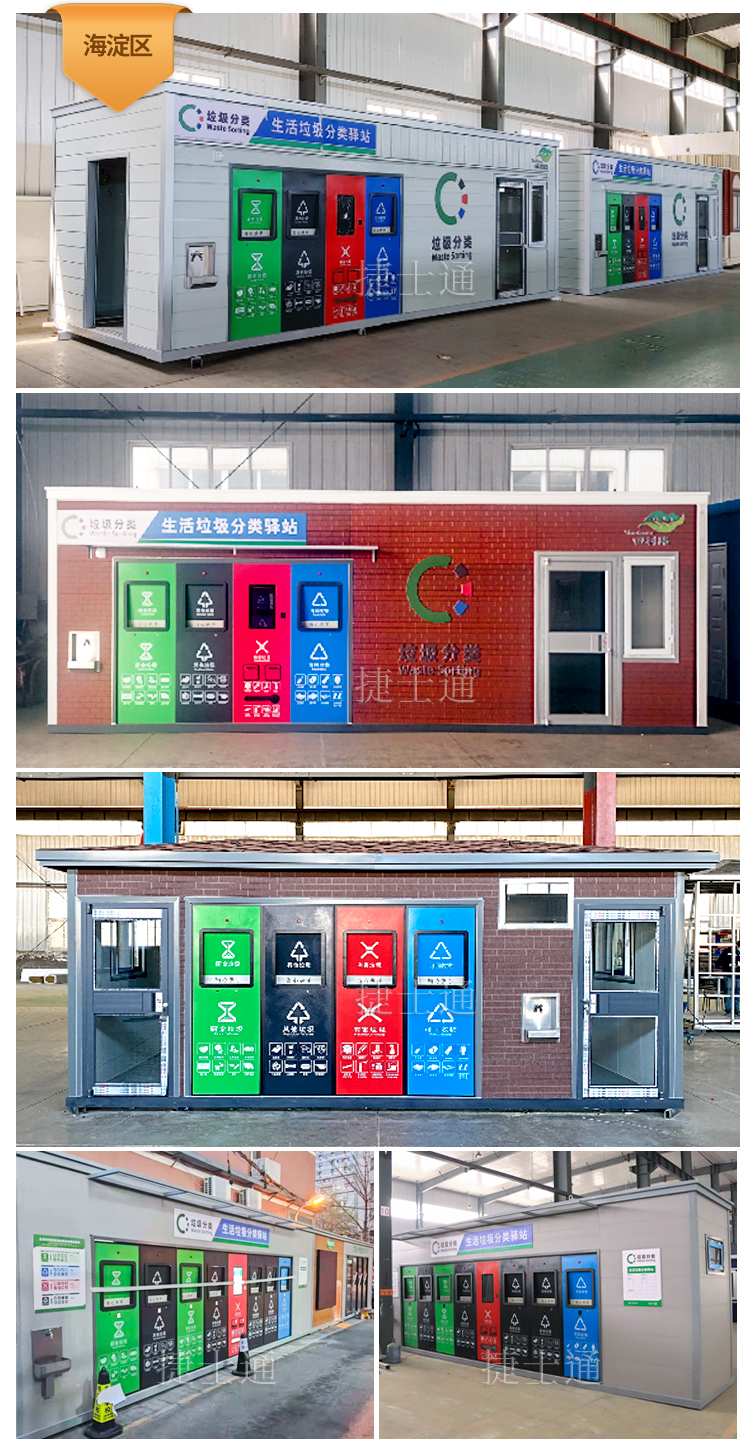 北京垃圾分類驛站的尺寸大小各不相同,有大尺寸現(xiàn)場裝配的(現(xiàn)場無污染,快速裝配交付)